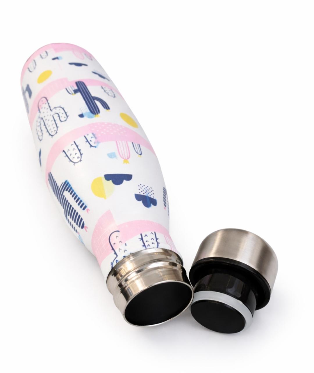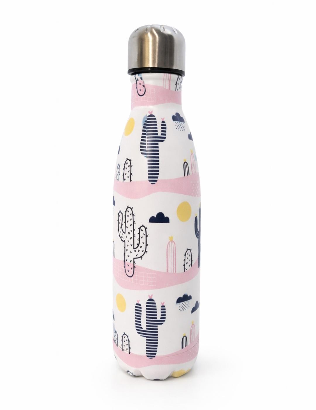 Ανοξείδωτο θερμός μπουκάλι με μοντέρνο και χαρούμενο σχεδιασμό κάκτων σε παστέλ αποχρώσεις . Ιδανικό για καθημερινή χρήση , διατηρεί τα ροφήματα ζεστά ή κρύα για πολλές ώρες χάρη στο διπλό τοίχωμα από ανοξείδωτο ατσάλι 304 . Το εργονομικό του σχήμα προσφέρει άνετο κράτημα , ενώ το στεγανό καπάκι αποτρέπει διαρροές , καθιστώντας το τέλειο για το γραφείο , το σχολείο ή τις εκδρομές .