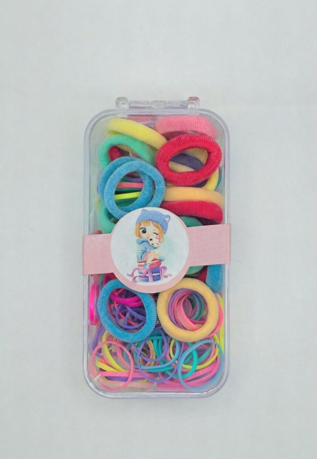 Χαριτωμένο και πρακτικό σετ με πολύχρωμα λαστιχάκια μαλλιών , ιδανικό για καθημερινά χτενίσματα . Το σετ περιλαμβάνει δύο μεγέθη και τύπους λάστιχων , υφασμάτινα και λεπτά σιλικόνης . Όλα τα λαστιχάκια αποθηκεύονται σε διάφανο κουτί με καπάκι ώστε να παραμένουν οργανωμένα και εύκολα στη μεταφορά .